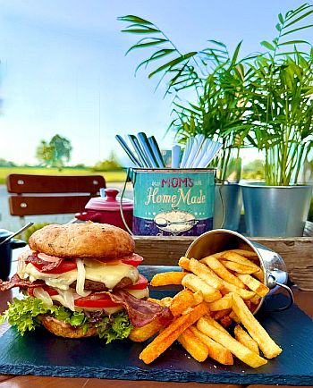 Probiert einen köstlichen Burger, mit hausgemachtem Burger-Bun und regionalem Biofleisch vom Hof Muhs
